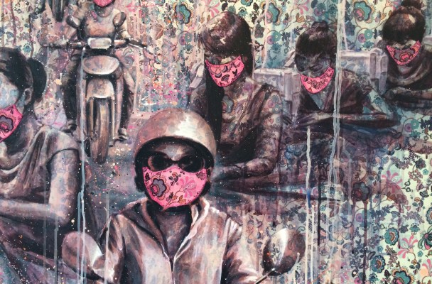 Schmidt’s work pulls you in gradually. I started with a casual glance at ‘Child’s Play’ (children bent double picking cotton against a backdrop of play-room wallpaper), got hooked by ‘End of Empire’, and had to come back a second time later in the afternoon to properly take in ‘Morris’ Dilemma’ and ‘The Spectre’ (two large hangings above the staircase depicting the darkly magnificent engines that drove Victorian mass production).