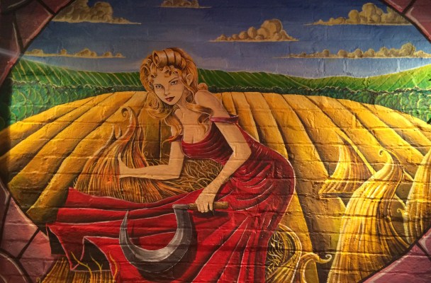 Nestled away on Owen Street, the Barrels is an eighteenth century coaching house selling Herefordshire’s greatest beer – Butty Bach. A bitter with the something approaching the strength of flavour of a Californian IPA, this is a pint to be savoured. The murals (below) in one of the out-houses is also worth a look, even if it is a bit on Whicker Man side of country-strange..