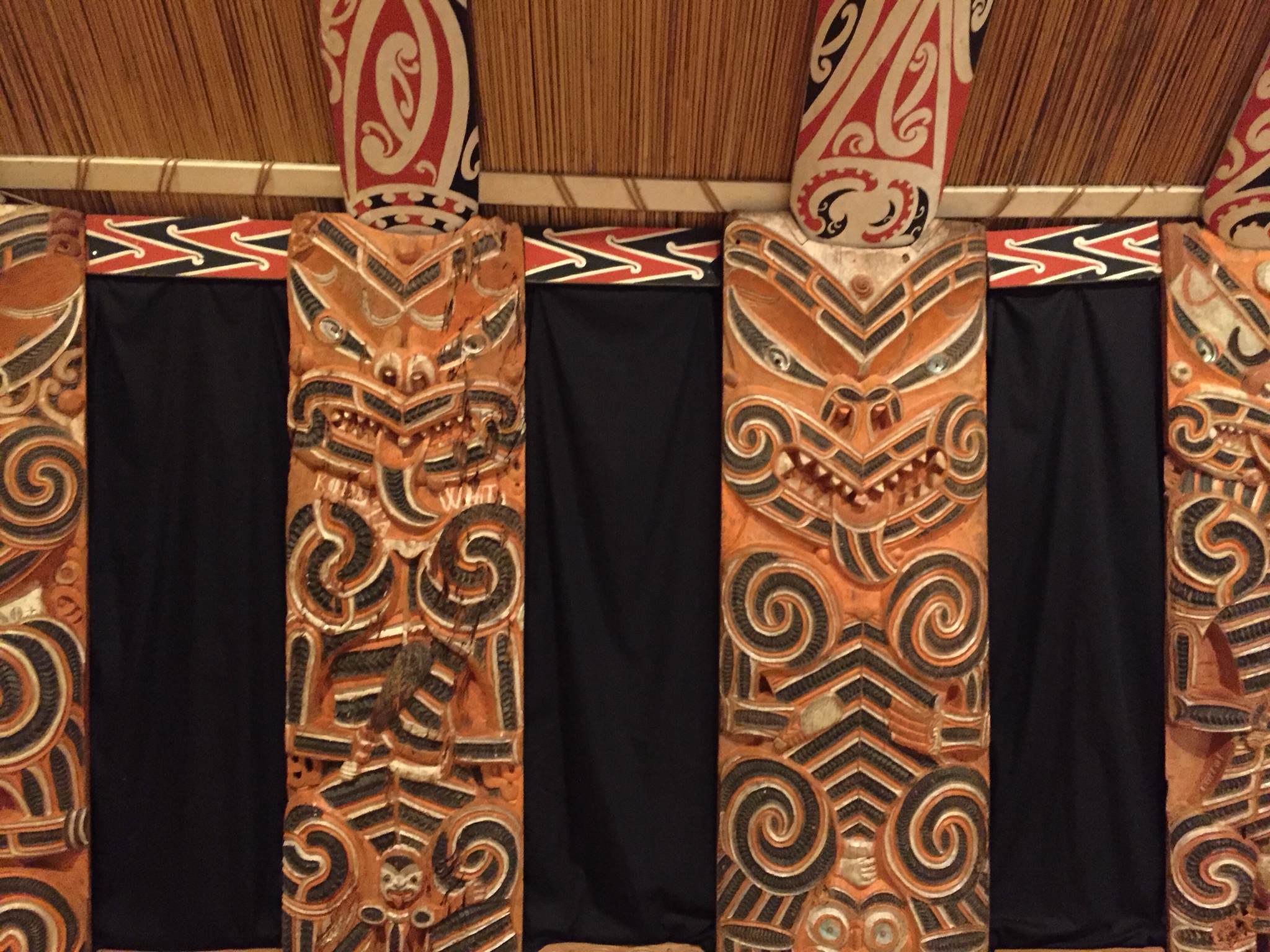 Auckland Museum has been built out in three parts over a century, a reality that has created challenges for the facilities managers who are now using an impressive building management system to try and make it more energy efficient. But inside it houses some fantastic Maori and polynesian art, including a traditional Maori meeting houese (Hotunui). The apparently repetitive patterns that adorn the vertical wooden panels (pictured) are each in fact unique and represent a specific ancestor, mostly those who led the expedition to discover New Zealand.