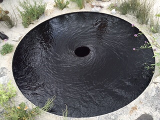 Adjacent to The Wormhole and closer to the present day was the Near Future Garden, in which we were invited to imagine the impact of climate change on our fragile little planet. Cue more blackness, this time in the clever form of a swirling vortex of black water, symbolising all that dirty oil we shouldn't be burning. But surrounding was a message of hope, in the form of plantings that reflect how gardeners are adapting to an over-heating world and beautfiul wooden sculptures depicting the solar, wind, and water power alternatives to those nasty carbon-emitting fuels.