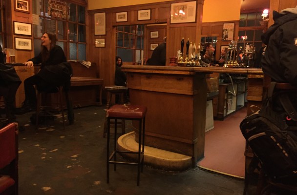 Back in the Coach and Horses the colours are all a bit duller, as my fellow Brits move comfortably into their winter greys. The wood panelling and the warm golden ales being supped are the only nod to the glorious autumnal display outside.
