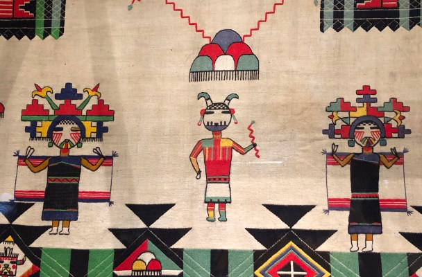 Perhaps because of there is an enduring vein of connection of with nature that permeates through American Indian culture across the millennia, a tour of the museum proceeds geographically rather than chronologically, starting with the Mapuche people of Patagonia, whose medicine men and women use a reve pole, an arresting example of which is on display, to reach the Wenu Mapu – the blue space above in which the deities live.