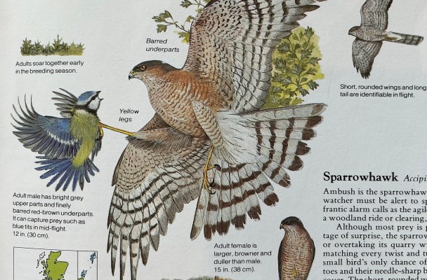 In his rousing book, Raptors, James Macdonald Lockhart describes the moment an unremarkable afternoon walk transforms into a never-to-be-forgotten moment: “Rising out of the bramble thicket beside a gate was a female Sparrowhawk. Wings spread, tail open in a fan as she rose..appearing as if from nowhere and then [she] was gone.” For Macdonald Lockhart, Sparrowhawks “operate in a different dimension to other birds of prey”. Having last week experienced an almost identical encounter with the lightning-fast aerial hunter that the Welsh call ‘Gwlchglas’, I know what he means.