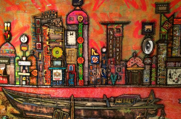 My favourite was a collection by Yiannis Roussakis, included a quartet of paintings depicting the Madinat Zayed street market (below), and a lovely camel portrait, ‘I’m Calling You’. Emily Gordon’s loud ‘Abu Dhabi Corniche’ (see above) was also eye-catching and, I suspect, slightly more vibrant than the real thing.